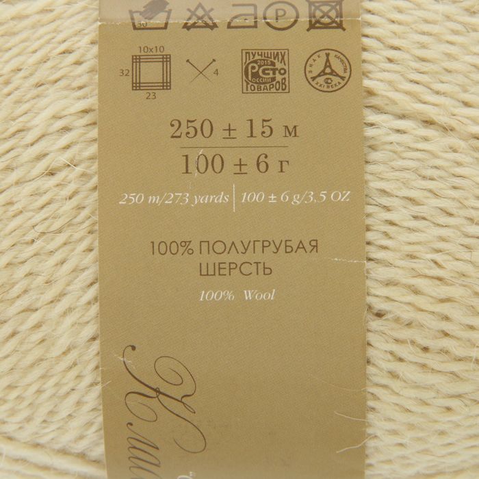 Пряжа "Деревенская" 100% полугрубая шерсть 250м/100гр (166-Суровый)