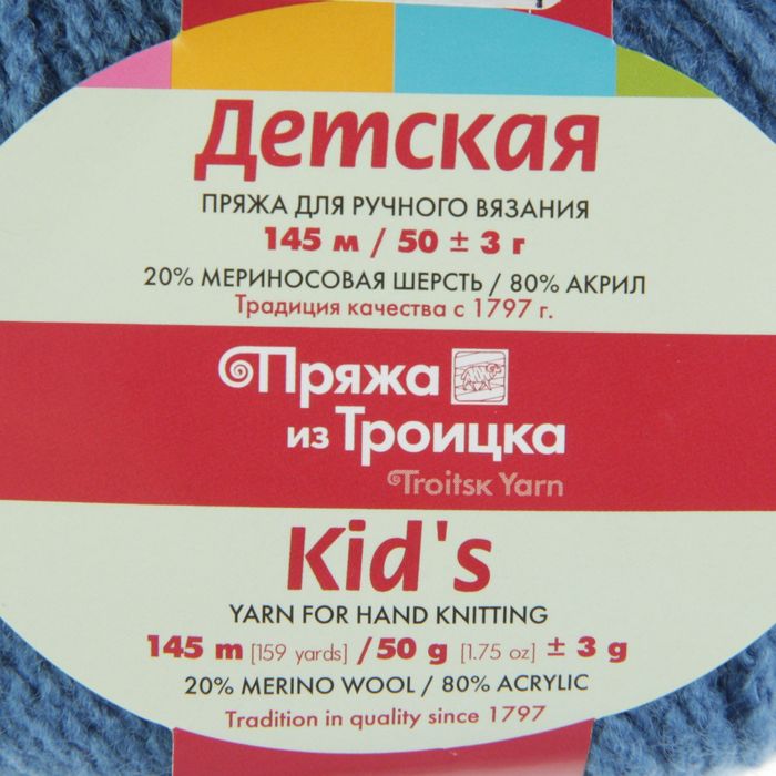 Пряжа "Детская" 20% меринос.шерсть, 80% акрил 145м/50гр (3678, светло-джинс.)
