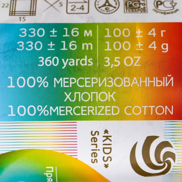 Уникальная детская пряжа состоит из 100 % мерсеризованного хлопка, который отличается от обычного способом обработки. Благодаря ему волокно обретает высокую прочность, устойчивость к истиранию и мягкость. Получившееся в итоге полотно является ровным, имеет лёгкий глянцевый блеск и отлично подходит для жаркой летней погоды.