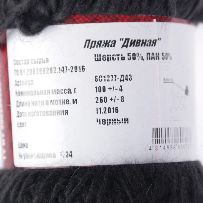 Пряжа "Дивная" 50% шерсть, 50% ПАН 260м/100гр (Черный)