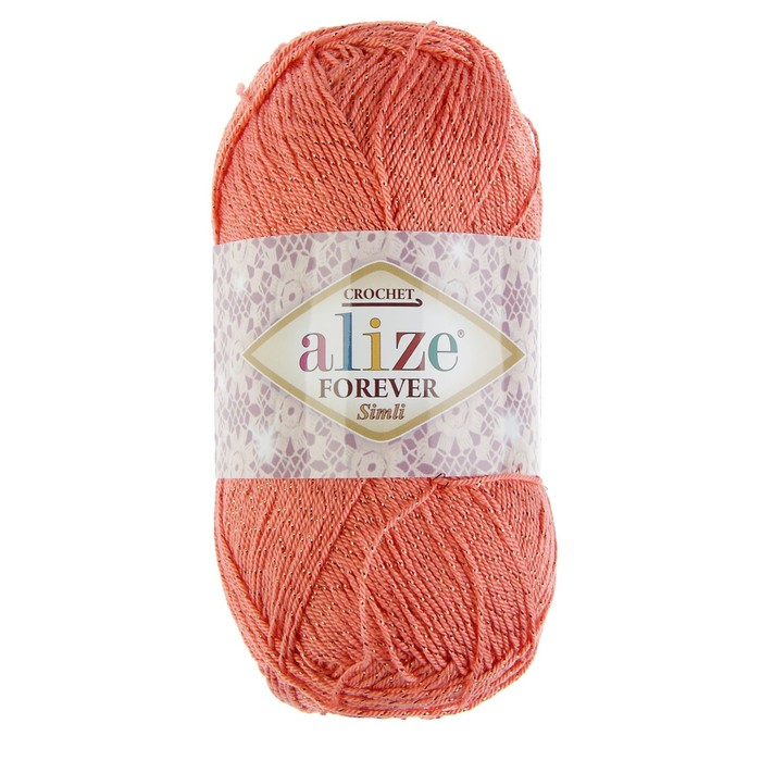 Пряжа "Forever Chrochet sim" 96% микрофибра акрил, 4% металлик 280м/50гр (619 коралловый)