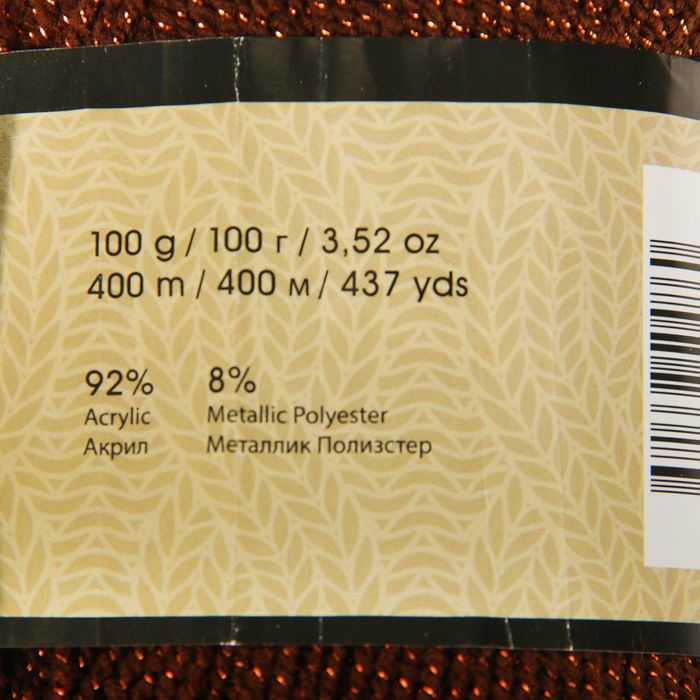 Пряжа "Gold" 92% акрил, 8% металлик 400м/100гр (9032 коричневый с кор.люрекс)