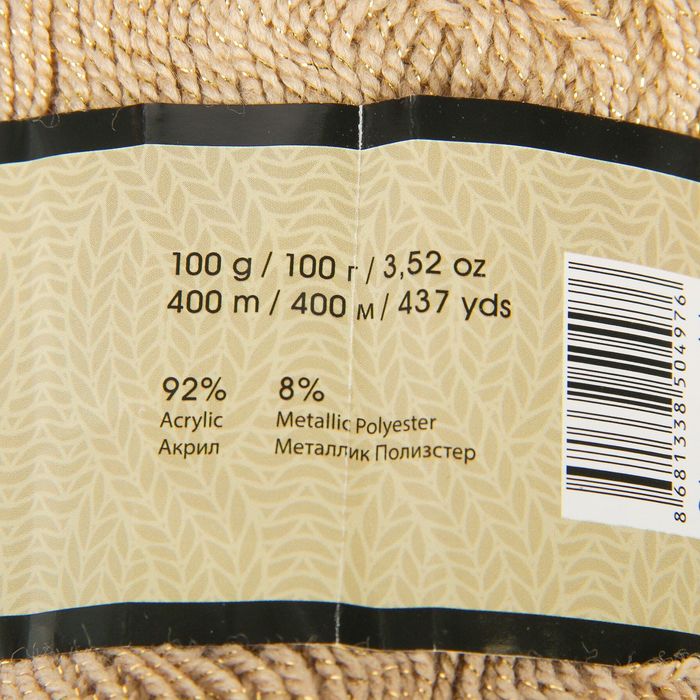 Пряжа "Gold" 92% акрил, 8% металлик 400м/100гр (9048 бежевый с люрексом)