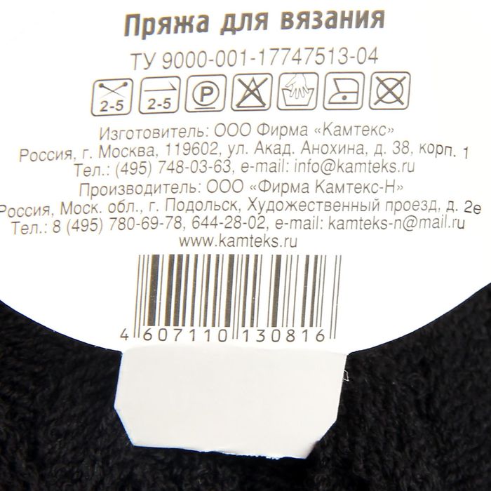 Пряжа "Хлопок стрейч" 98% хлопок, 2% лайкра 160м/50гр (003 черный)