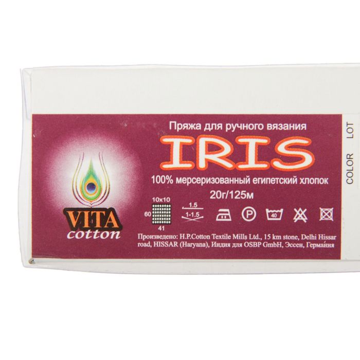 Пряжа "Iris" 100% мерсеризованный хлопок 125м/20гр (2129 молочный)