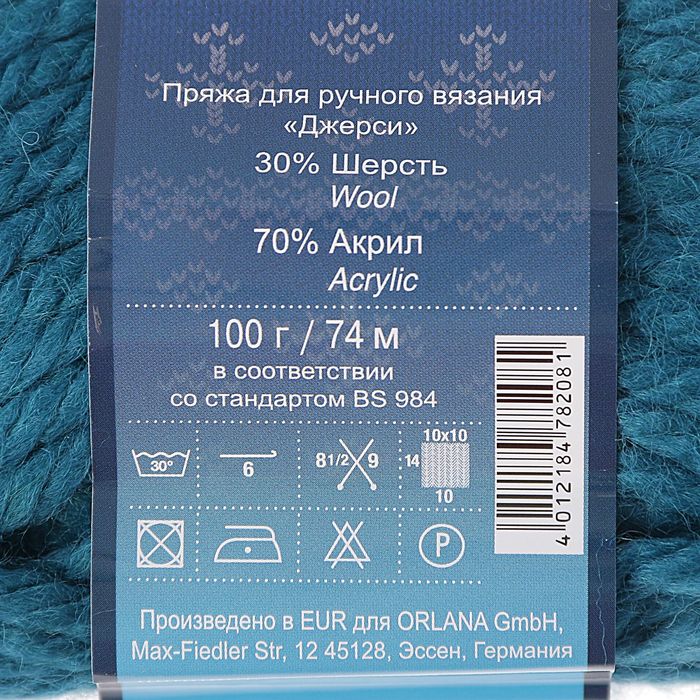 Пряжа "Jersey" 30% шерсть, 70% акрил 74м/100гр (1957 морская волна)