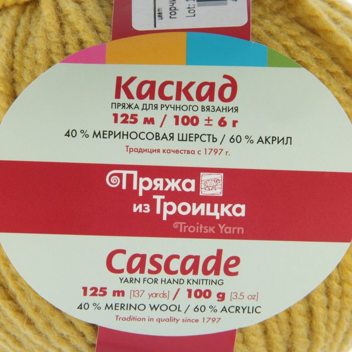 Пряжа "Каскад" 40% шерсть, 60% акрил 125м/100гр (1268, горчица)