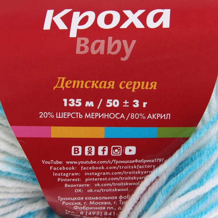 Пряжа "Кроха" 20% шерсть/80% акрил 135 м/50 гр (4015, секционный)