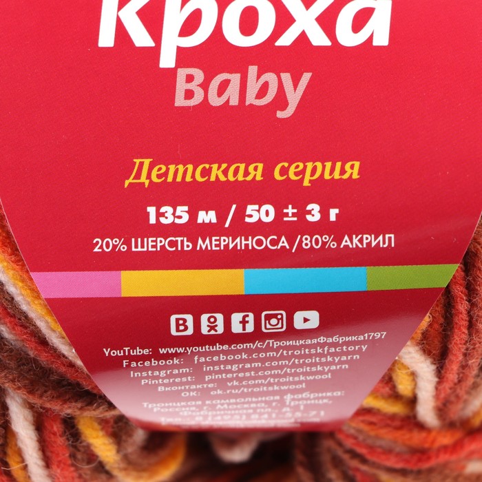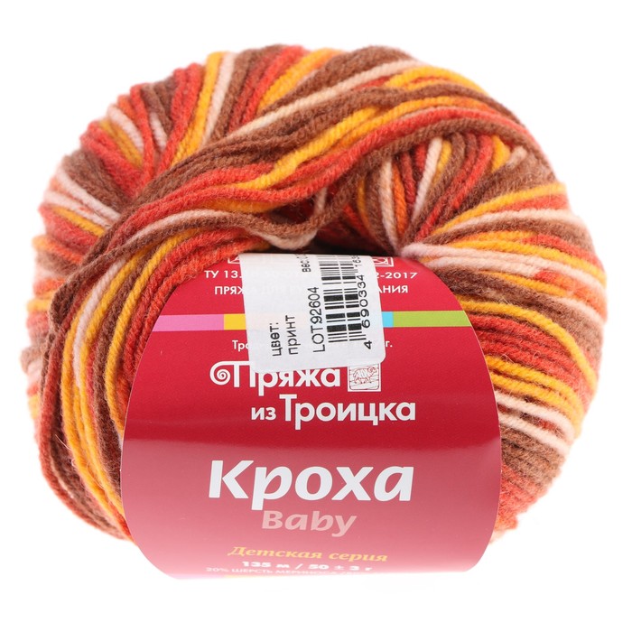 Пряжа "Кроха" 20% шерсть/80% акрил 135 м/50 гр (7076, принт)