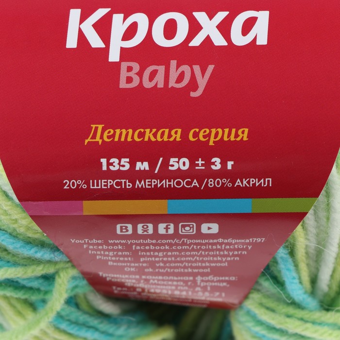 Пряжа "Кроха" 20% шерсть/80% акрил 135 м/50 гр (7174, принт)