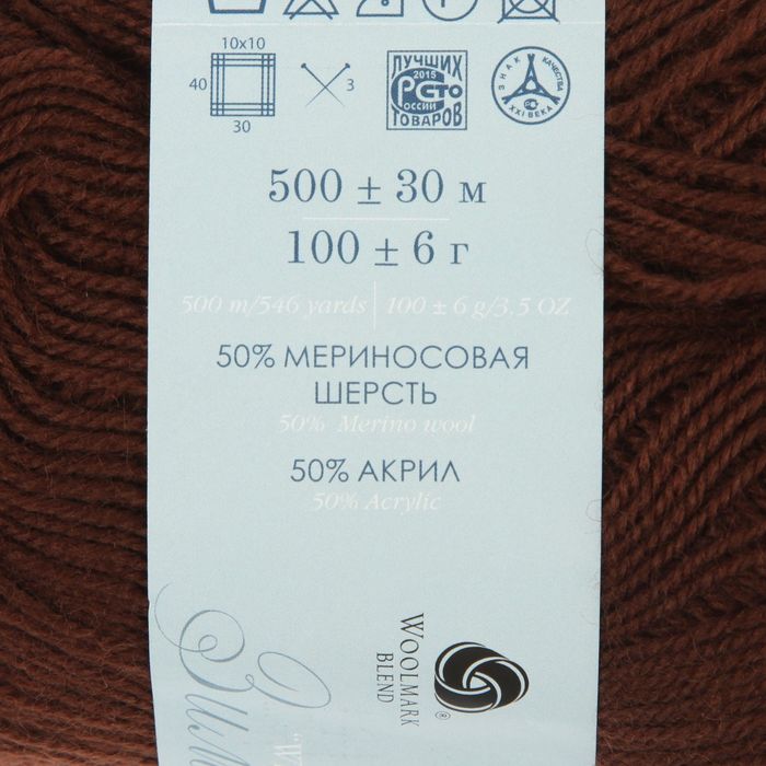 Пряжа "Кроссбред Бразилии" 50%меринос.шерсть, 50% акрил 500м/100гр (17-Шоколад)