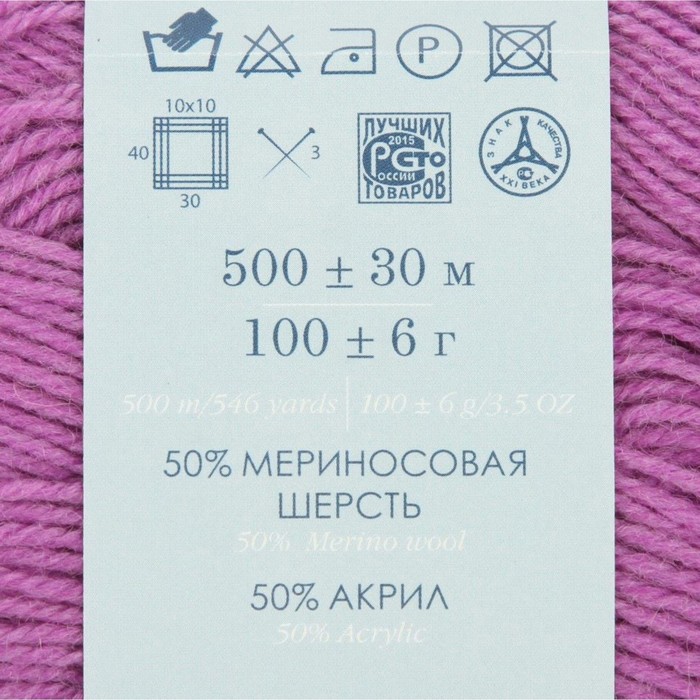 Пряжа "Кроссбред Бразилии" 50%меринос.шерсть, 50% акрил 500м/100гр (179-Фиалка)
