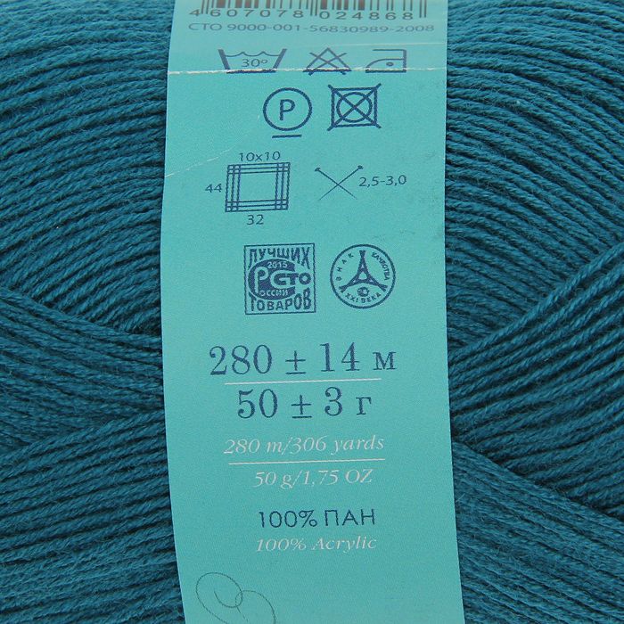 Пряжа "Кружевная" 100% акрил 280м/50гр (14-Морская волна)