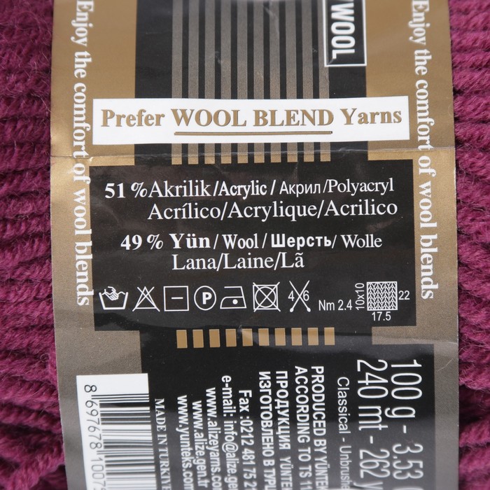 Пряжа "Lanagold" 51% акрил, 49% шерсть 240м/100гр (307 гнилая вишня )