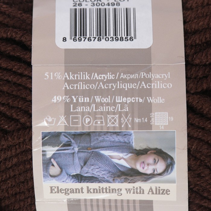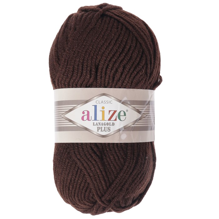 Пряжа "Lanagold plus" 49% шерсть, 51% акрил 140м/100гр (26 коричневый)