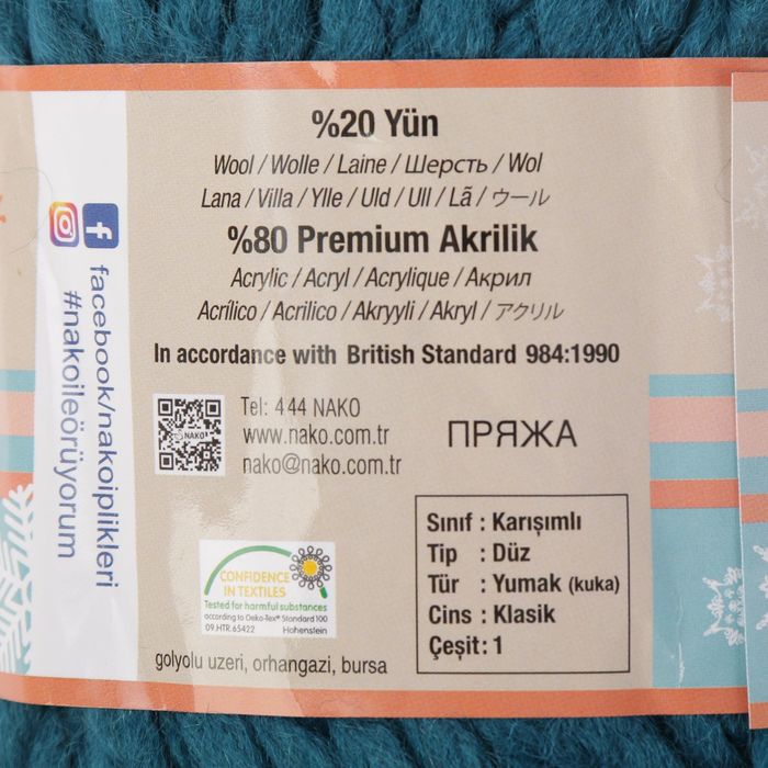 Пряжа "Lora" 80% акрил, 20% шерсть 35м/100гр (3617 морская бирюза )
