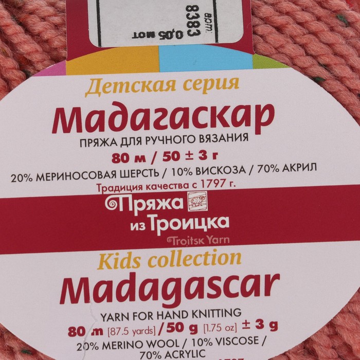 Пряжа "Мадагаскар" 20% меринос. шерсть, 10% вискоза, 70% акрил 80м/50гр (8383 бегония)