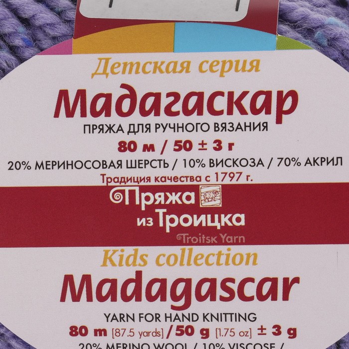 Пряжа "Мадагаскар" 20% меринос. шерсть, 10% вискоза, 70% акрил 80м/50гр (8389 сирень)
