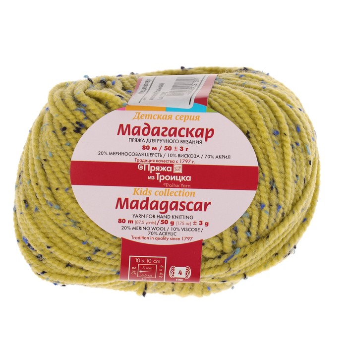 Пряжа "Мадагаскар" 20% меринос. шерсть, 10% вискоза, 70% акрил 80м/50гр (8396 лимон)