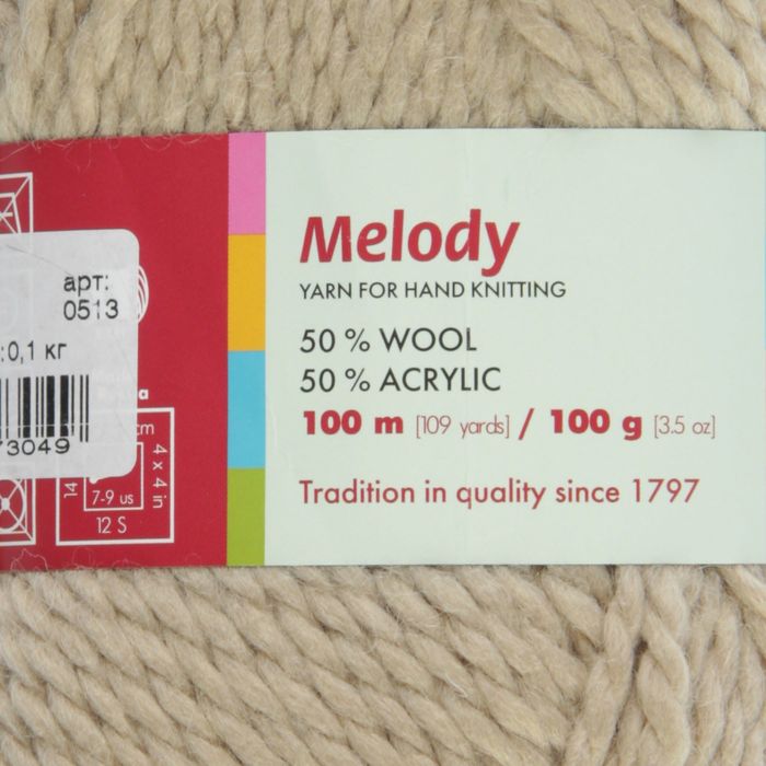 Пряжа "Мелодия" 50% шерсть, 50% акрил 100м/100гр (0513, жемчуг)