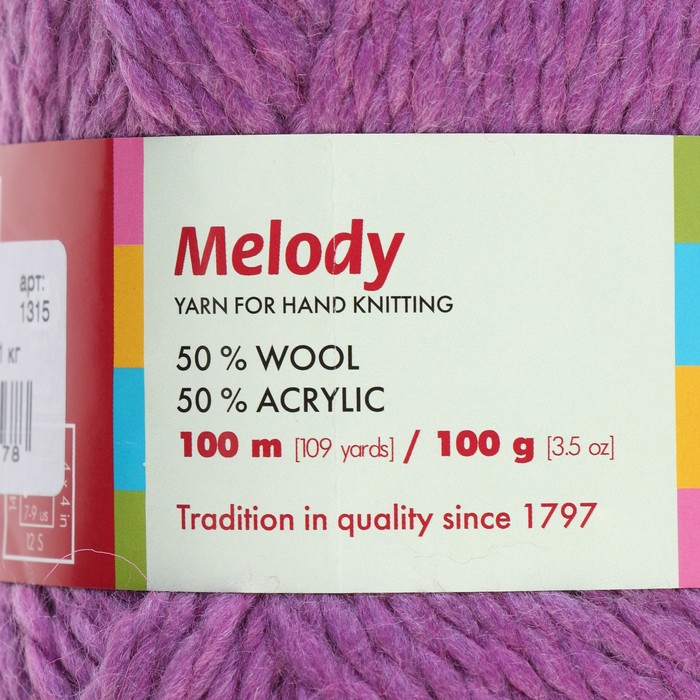 Толстая, объёмная пряжа "Мелодия" 50% шерсть, 50% акрил 100м/100гр (1315 фиалка), шелковистая на ощупь подходит для вязки любых изделий. Благодаря мягкости и гигроскопичности нить используется даже для вязки детских вещей. Рукодельницы создают изумительные пледы, куртки, кофты, носки и многое другое. Пряжа на все случаи жизни!