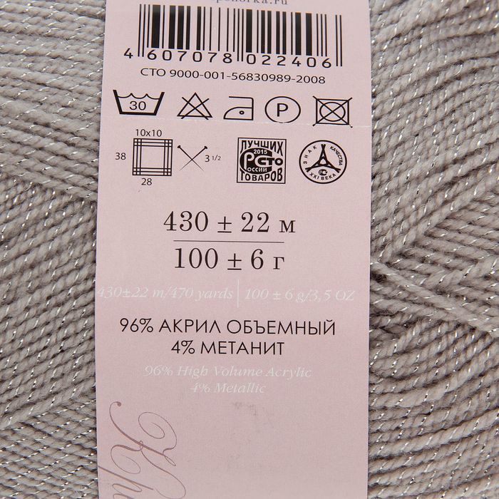 Пряжа "Мерцающая" 96% акрил высокообъемный, 4% метанит 430м/100гр (08-Св.серый)