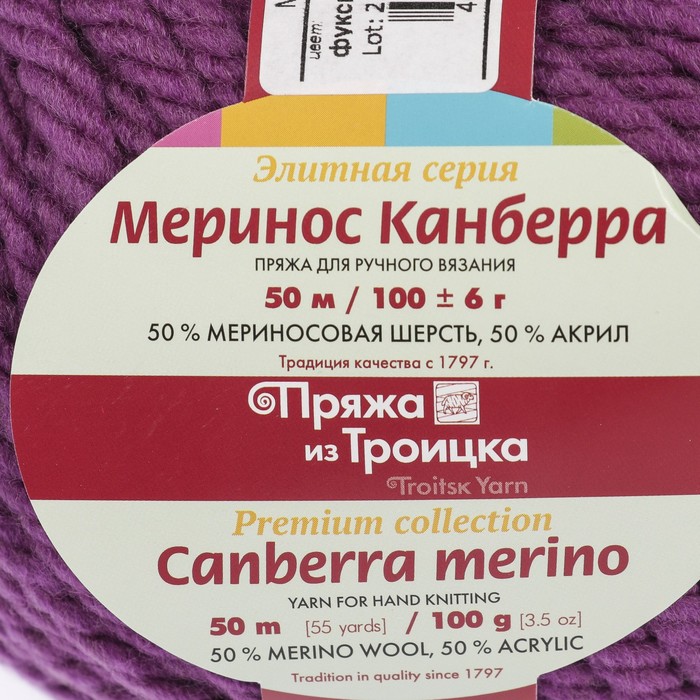 Пряжа "Меринос Канберра" 50% мерин.шерсть, 50% акрил 50м/100гр (3880 фуксия)