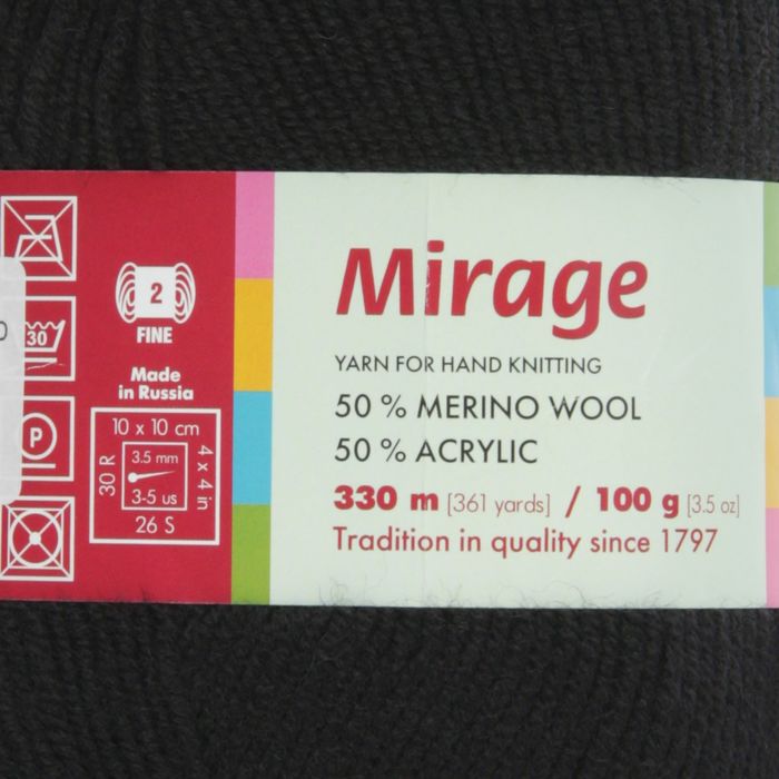 Пряжа "Мираж" 50% шерсть, 50% акрил 330м/100гр (0140, черный)