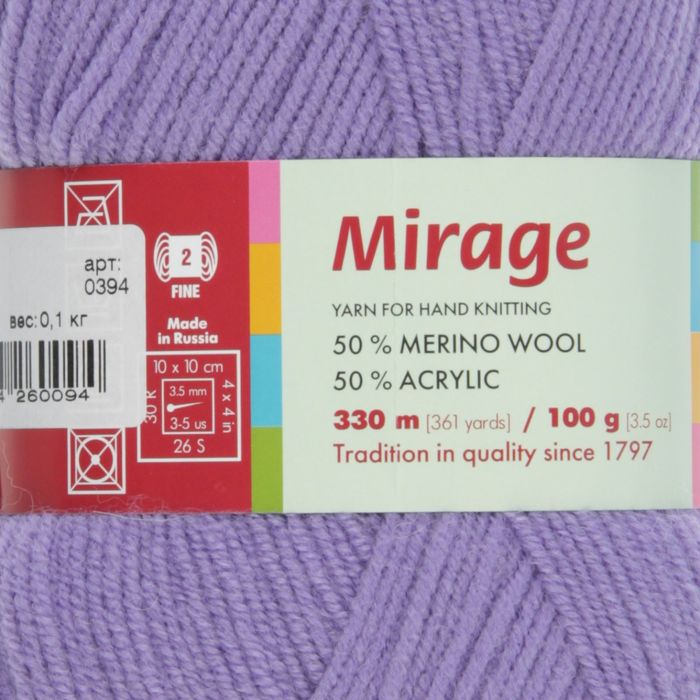 Пряжа "Мираж" 50% шерсть, 50% акрил 330м/100гр (0394, сирень)