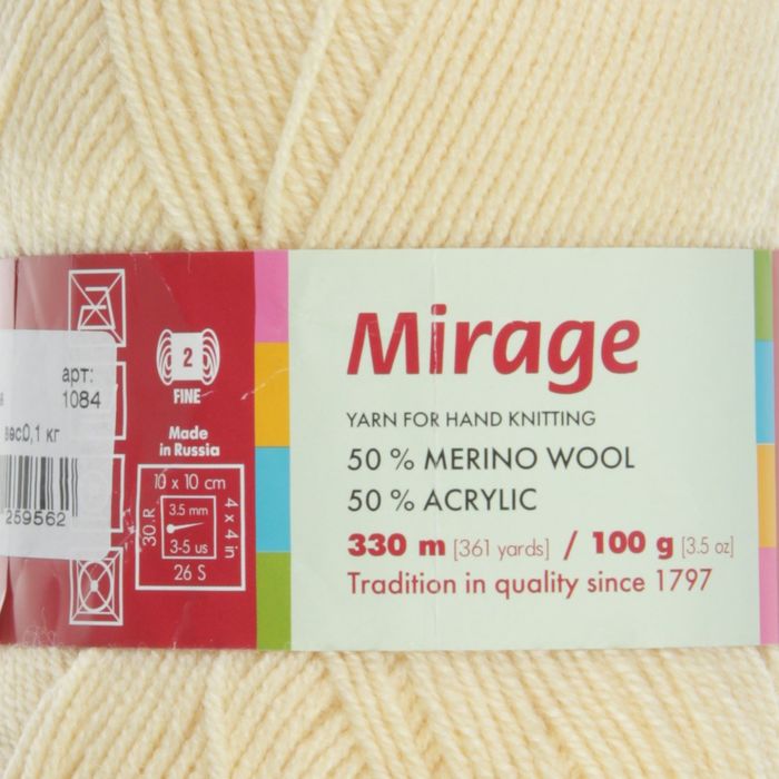 Пряжа "Мираж" 50% шерсть, 50% акрил 330м/100гр (1084, шампанское)