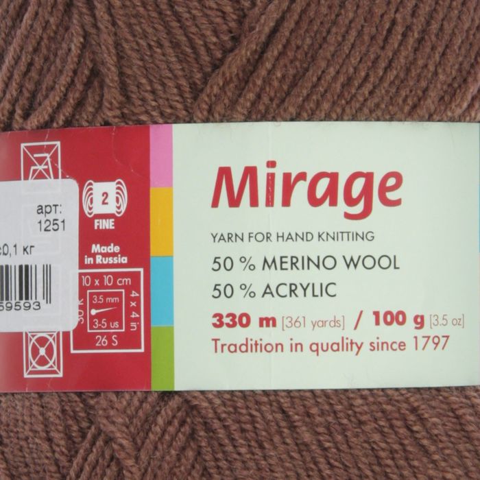 Пряжа "Мираж" 50% шерсть, 50% акрил 330м/100гр (1251, мол.шоколад)