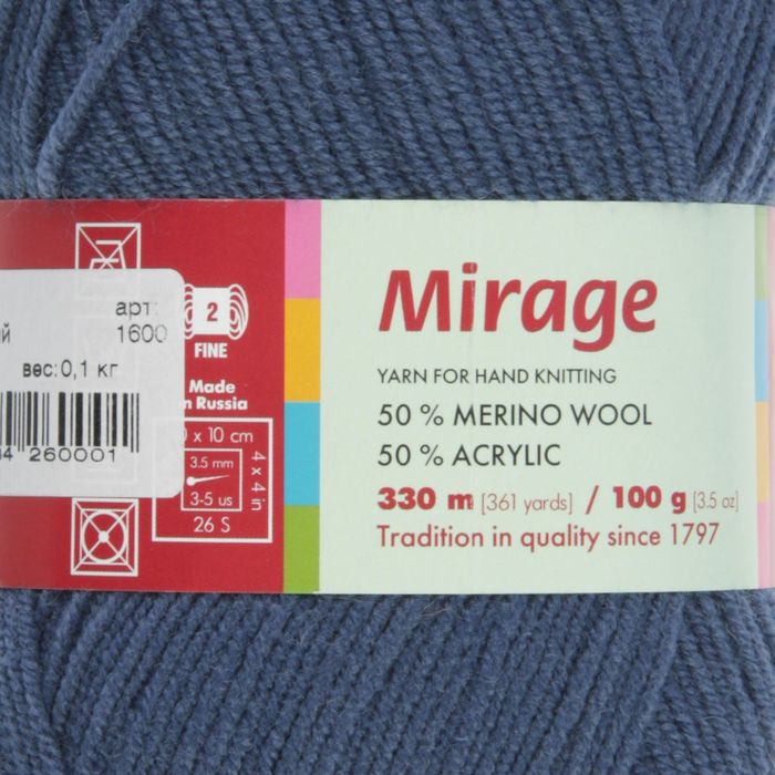 Пряжа "Мираж" 50% шерсть, 50% акрил 330м/100гр (1600, джинсовый)