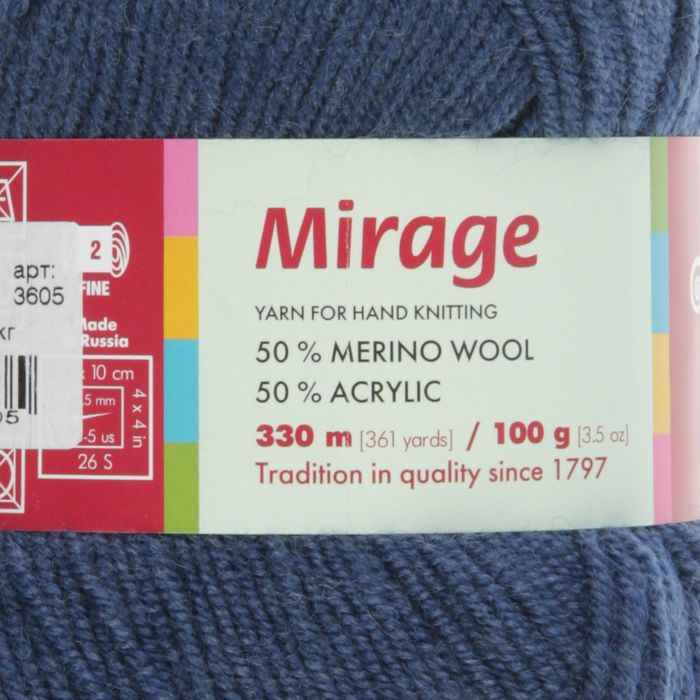 Пряжа "Мираж" 50% шерсть, 50% акрил 330м/100гр (3605, синий)