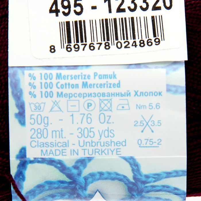 Пряжа "Miss" 100% мерсеризованный хлопок 280м/50гр (495 бордо)