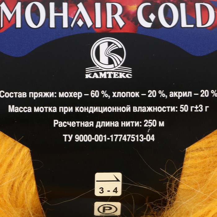 Пряжа "Мохер Голд" 60% мохер, 20% хлопок, 20% акрил 250м/50гр (104 желтый)