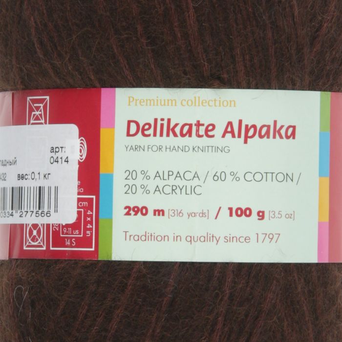 Пряжа "Нежная альпака" 20% альпака, 60% хлопок, 20% акрил 290м/100гр (0414, шоколад.)