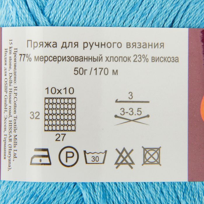 Пряжа "Orion" 77% мерсеризованный хлопок, 23% вискоза 170м/50гр (4561 св.бирюза)