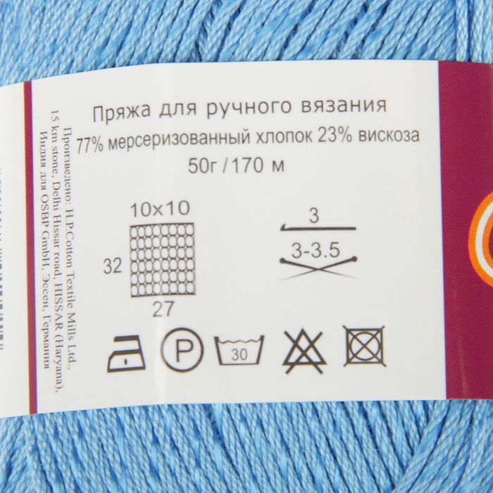 Пряжа "Orion" 77% мерсеризованный хлопок, 23% вискоза 170м/50гр (4574 яр.голубой)