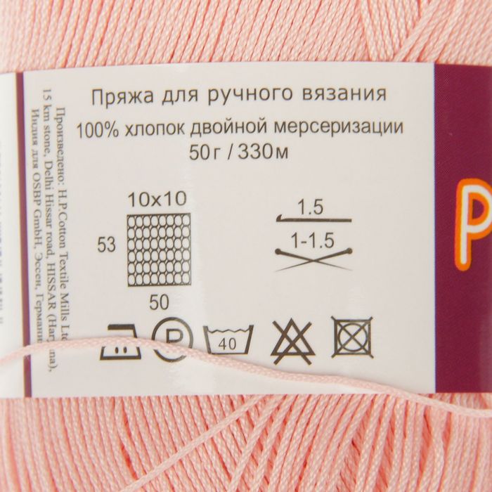 Пряжа "Pelican" 100% мерсеризованный хлопок 330м/50гр (3956 св.розовый)