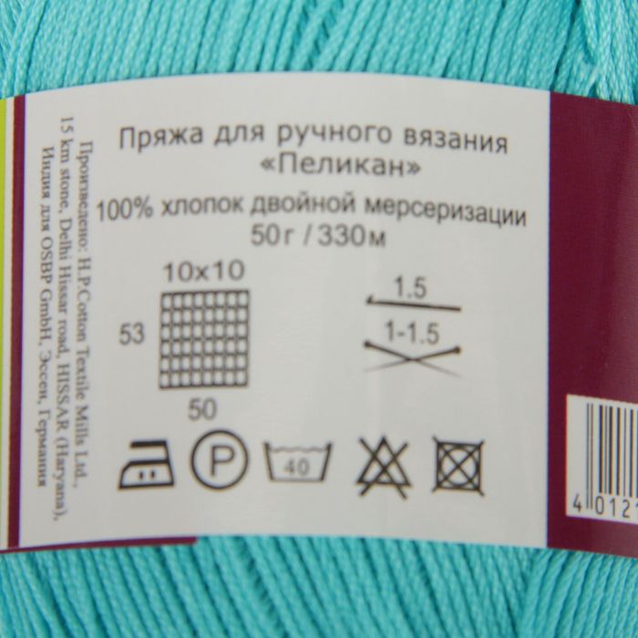 Пряжа "Pelican" 100% мерсеризованный хлопок 330м/50гр (3999 св.гол.бирюза)