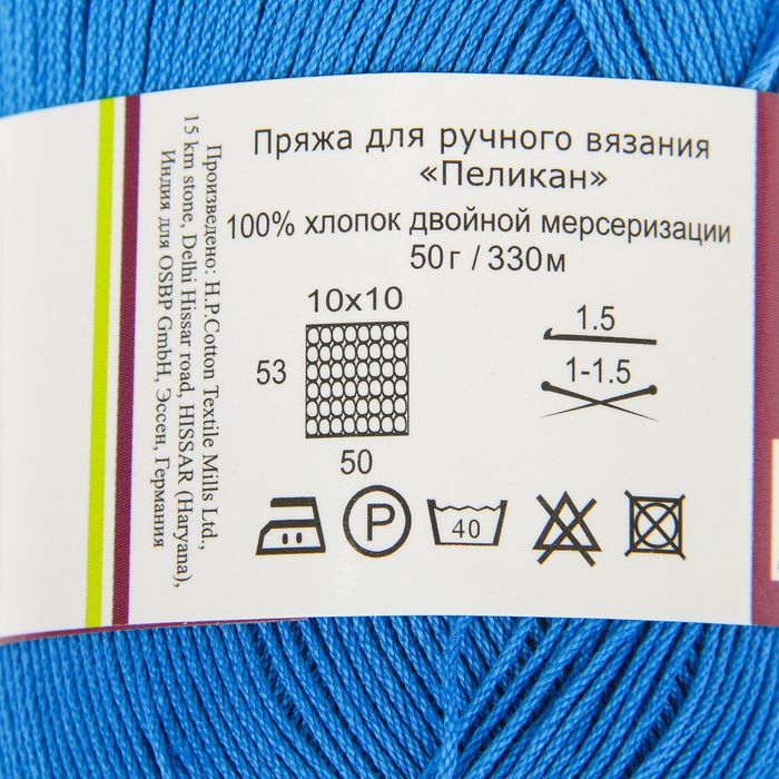 Пряжа "Pelican" 100% мерсеризованный хлопок 330м/50гр (4000 яр.голубой)