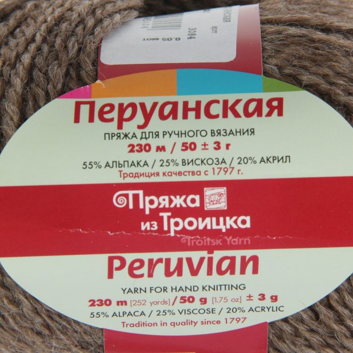 Пряжа "Перуанская" 55% альпака, 25% вискоза, 20% акрил 230м/50гр (3084, меланж (кофе))