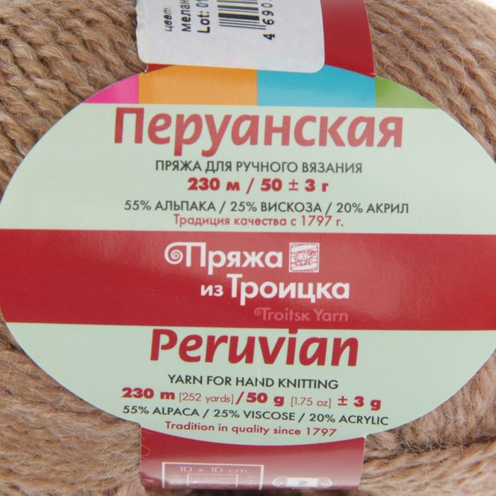 Пряжа "Перуанская" 55% альпака, 25% вискоза, 20% акрил 230м/50гр (3085, меланж (беж.))