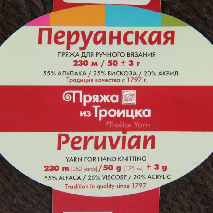 Пряжа "Перуанская" 55% альпака, 25% вискоза, 20% акрил 230м/50гр (3100, меланж(шоколад))