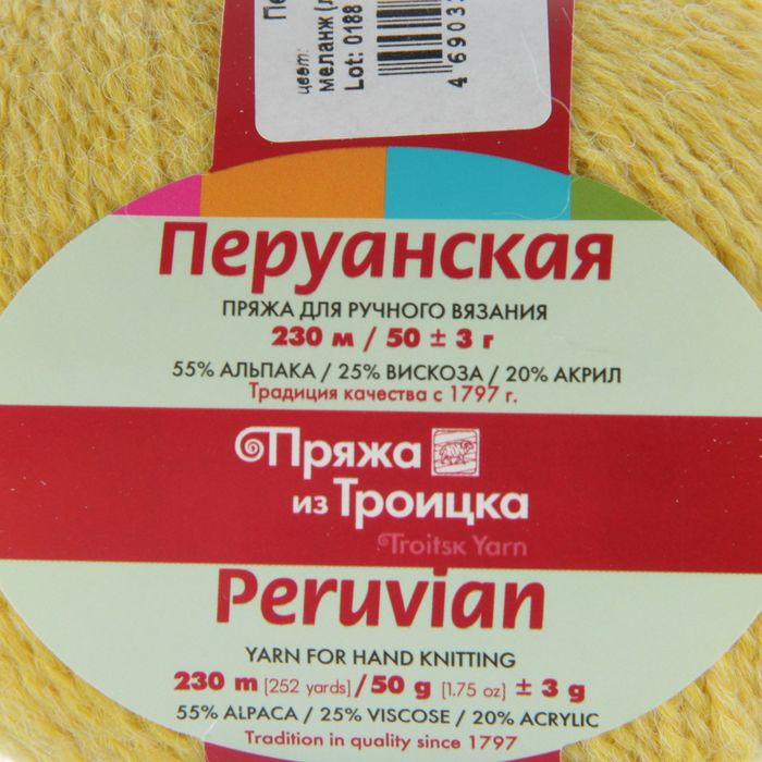 Пряжа "Перуанская" 55% альпака, 25% вискоза, 20% акрил 230м/50гр (3256, меланж (лимон))