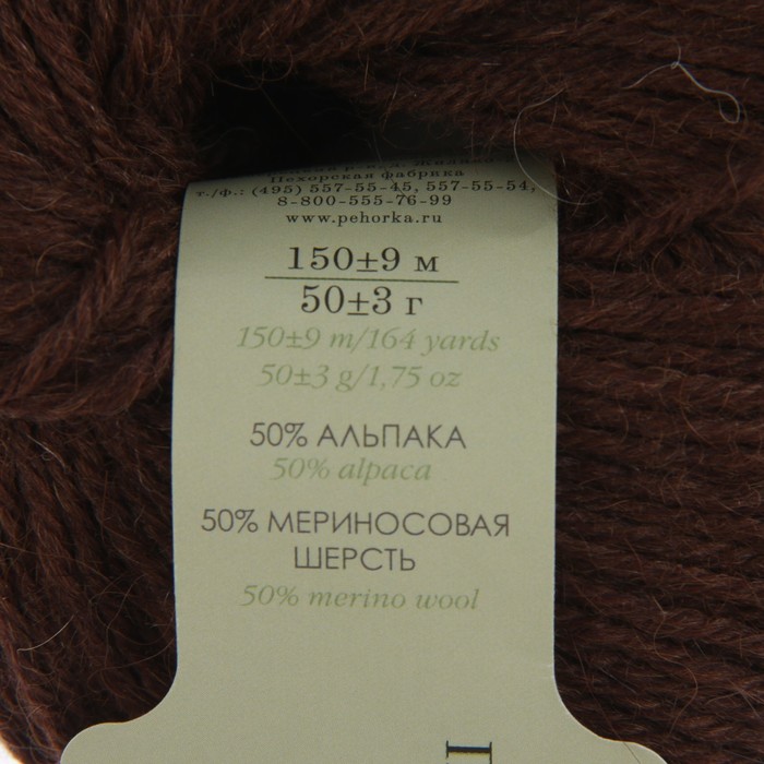 Пряжа "Перуанская альпака" 50% альпака, 50% меринос.шерсть 150м/50гр (251-Коричневый)