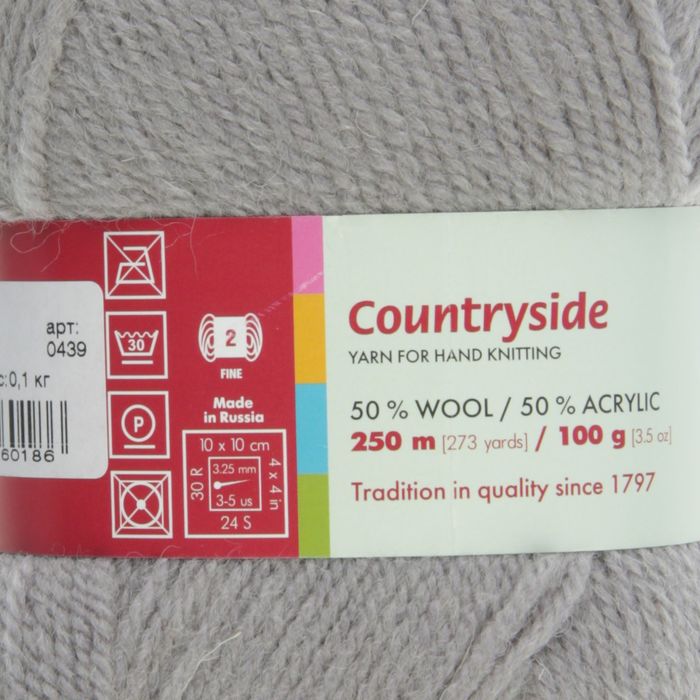 Пряжа "Подмосковная" 50% шерсть, 50% акрил 250м/100гр (0439, серый)