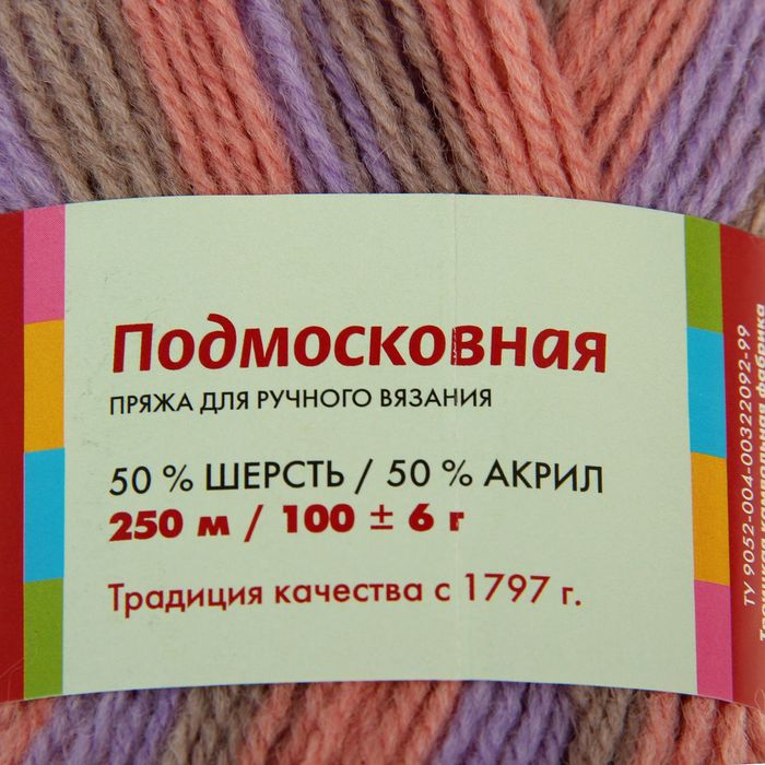 Пряжа "Подмосковная" 50% шерсть, 50% акрил 250м/100гр (7276, принт)