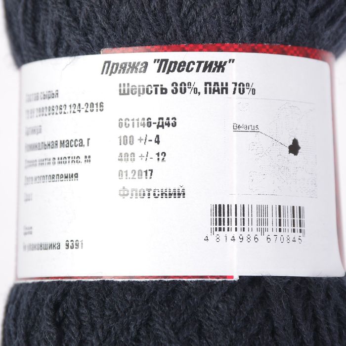 Пряжа "Престиж" 30% шерсть, 70% ПАН 400м/100гр (Флотский)
