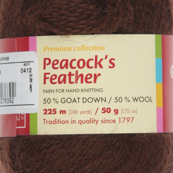 Пряжа "Пушинка" 50% шерсть, 50% козий пух 225м/50гр (0412, шоколадный)